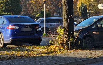 Poranna kraksa koło wieży ciśnień. Wezwano policję