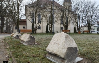 Odnaleziono gzyms koronujący fasadę dawnego zamku rodziny Biron von Curland w Sycowie