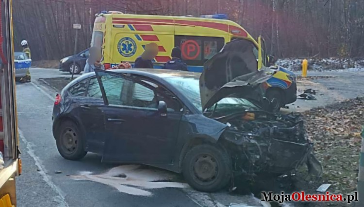 Na miejscu interweniowała policja, straż pożarna i pogotowie ratunkowe. Dwie poszkodowane osoby zostały przetransportowane do szpitala. W trakcie działań służb w okolicy występowały utrudnienia w ruchu. Trwa wyjaśnianie okoliczności wypadku.