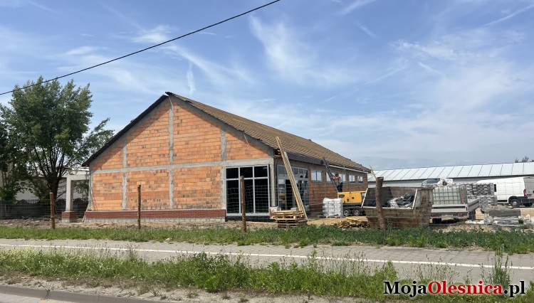 W Oleśnicy powstaje kolejny market sieci Dino. Jeszcze w maju informowaliśmy, że ruszyły pierwsze prace związane z budową nowego sklepu. Miesiąc później obiekt już stoi - wymurowane zostały ściany, wstawione okna, a całość pokryta jest dachem.