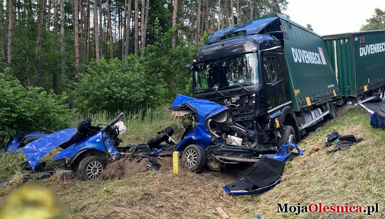 - 65-letni mężczyzna z powiatu oleśnickiego kierował volkswagenem. Jechał w kierunku Ostrowa Wielkopolskiego. Z nieustalonych przyczyn zjechał na przeciwny pas ruchu i zderzył się czołowo z ciągnikiem siodłowym mercedesa. Niestety, w wyniku zdarzenia poniósł śmierć na miejscu - relacjonuje w rozmowie z portalem MojaOlesnica.pl asp. szt. Bernadeta Pytel, oficer prasowa Komendy Powiatowej Policji w Oleśnicy.