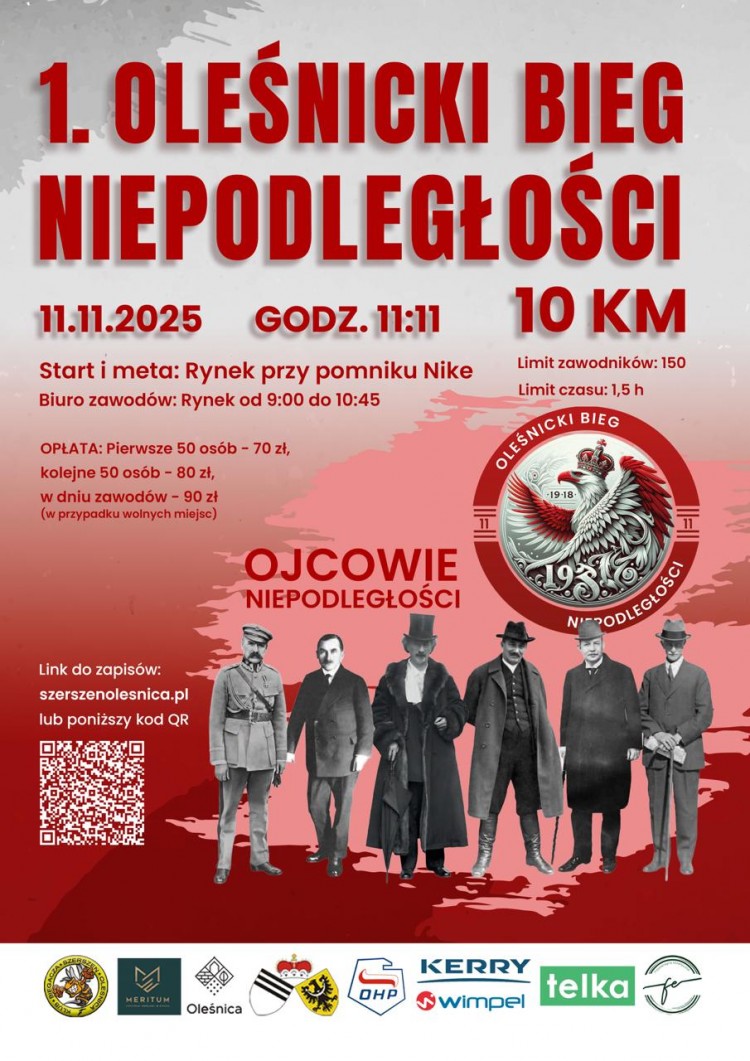 Z przyjemnością zapraszamy wszystkich biegaczy z Oleśnicy i okolic oraz nie tylko na 1. Oleśnicki Bieg Niepodległości, który wystartuje z oleśnickiego Rynku 11 listopada punktualnie o godzinie 11:11.