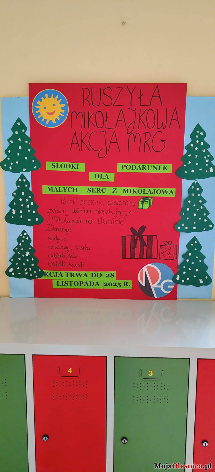 - Młodzieżowi radni we wszystkich szkołach Gminy Oleśnica prowadzą zbiórkę wafelków, czekolad, ciastek itp. do paczek mikołajkowych w ramach akcji "Słodki podarunek dla małych serc z Mikołajowa". Zbiórka trwa do piątku - 28.11. Zachęcamy gorąco - każdy może zostać Świętym Mikołajem - informuje Młodzieżowa Rada Gminy Oleśnica.