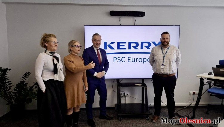 - Razem z zastępcą burmistrza Edytą Małys-Niczypor odwiedziliśmy oleśnicki oddział Kerry Polska. Spotkania z lokalnymi partnerami gospodarczymi są dla mnie kluczowym elementem wzmacniania potencjału naszego miasta. Kerry jest ważnym ogniwem lokalnej gospodarki na naszym terenie, przyczyniającym się do tworzenia miejsc pracy, rozwoju nowoczesnych technologii, miasta i region. To było cenne spotkanie z kadrą zarządzającą - szefem logistyki Kerry Adamem Josey, dyrektor oleśnickiego oddziału firmy Iwoną Karwacką, Michałem Rokitą i Ewą Juszczykowską. Dziękuję za otwartość i merytoryczne rozmowy o planach firmy, inwestycjach i dalszej współpracy z miastem - podsumowuje wizytę burmistrz Adam Horbacz.