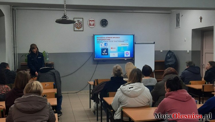 Działania projektowe zostały uzupełnione o spotkanie z przedstawicielem oleśnickiej Policji, które odbyło się podczas zebrań rodziców klas ósmych w dniu 22 stycznia 2026 r. Rodzice zostali zapoznani z zagrożeniami związanymi z korzystaniem z Internetu, w tym z cyberprzemocą, oraz z konsekwencjami prawnymi działań nieletnich. Spotkanie stało się także okazją do omówienia praktycznych sposobów wspierania dzieci w trudnych sytuacjach.