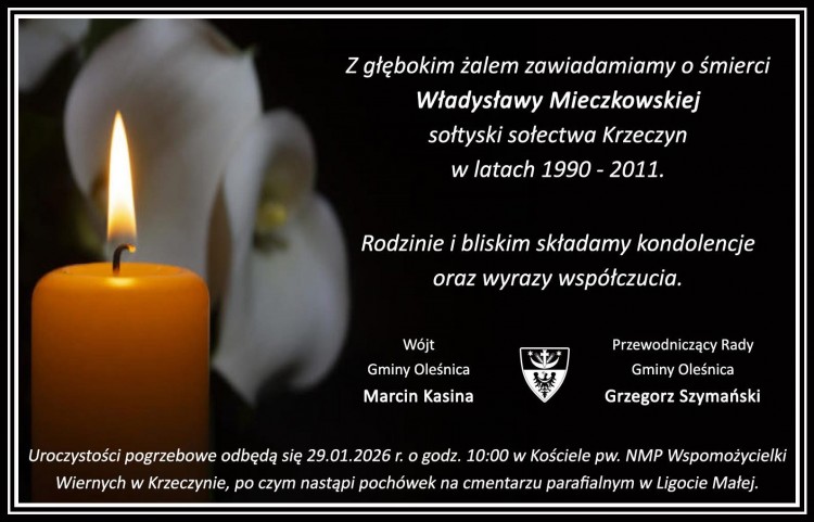 Gmina Oleśnica informuje o śmierci wieloletniej sołtys