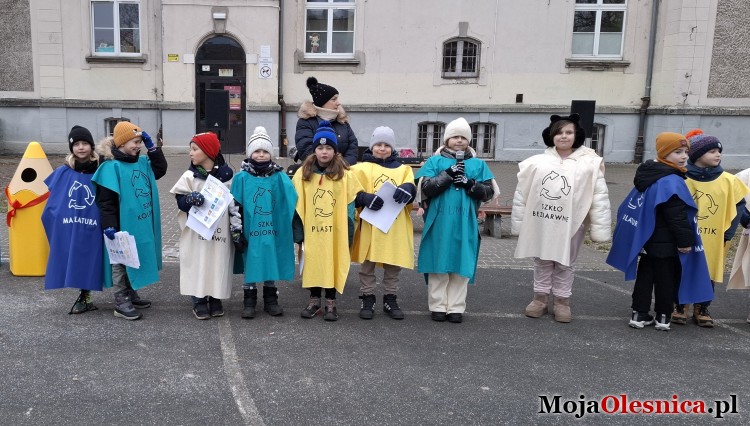 Apel rozpoczął się radosną piosenką o segregacji odpadów. Uczniowie wystąpili ubrani w kolorowe fartuszki ozdobione znakami recyklingu, co dodatkowo podkreśliło ekologiczny charakter wydarzenia. Po części artystycznej przedstawiciele każdej klasy dokonali uroczystego rozwiązania czerwonych wstążek przy nowych koszach do segregacji – kolorowe „kredki”.