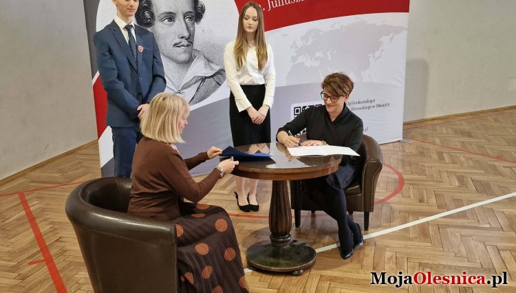 Przewodniczący Rady Powiatu Jan Bronś oraz członek Zarządu Powiatu Wojciech Paszkowski wzięli dziś udział w wydarzeniu, które daje uczniom I Liceum Ogólnokształcące im. Juliusza Słowackiego w Oleśnicy nowe możliwości rozwoju i dostęp do wiedzy akademickiej. Taką formą współpracy jest porozumienie zawarte z Uniwersytet Wrocławski.