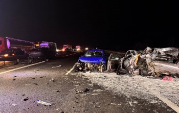 W zdarzeniu brały udział trzy pojazdy - cupra, bmw i opel. Uszkodzony został też pojazd po drugiej stronie trasy. Wkrótce na miejsce ma przyjechać prokurator. Utrudnienia maja potrwać jeszcze kilka godzin.