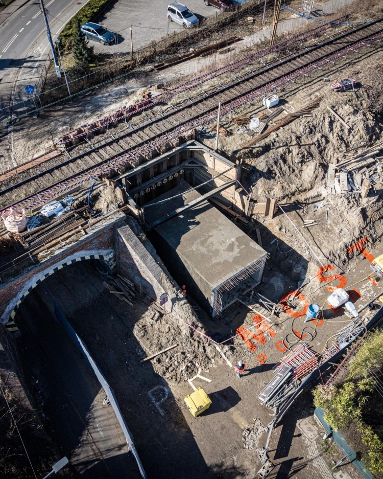 Realizujemy inwestycję polegającą na rozbudowie ciągów pieszo-rowerowych poprzez budowę tunelu drogowego w sąsiedztwie istniejącego wiaduktu kolejowego. To jest zadanie, które łączy inżynierię precyzyjną z wymagającą logistyką prowadzenia robót pod czynną linią kolejową.