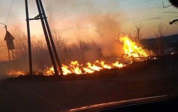 Płonęła sucha trawa i gałęzie